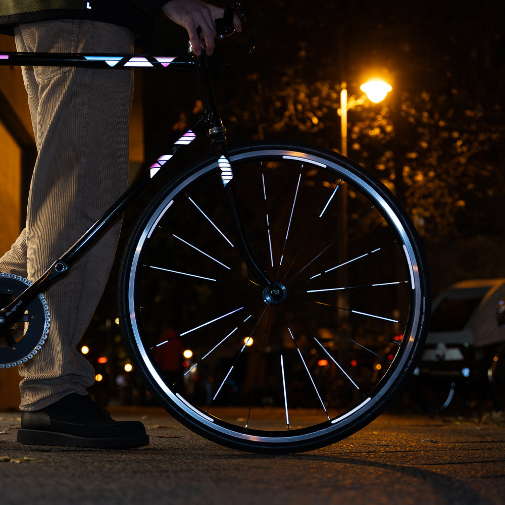 Faszinierende Speicheneffekte erzeugen - mit den Reflective Spokes, einem unserer beliebtesten Produkte. Das Set enthält 30 reflektierende Klebestreifen in verschiedenen Längen und vier Farbthemen - von dezent bis auffällig. So gestaltest Du Vorder- und Hinterrad ganz individuell und erhöhst die Sichtbarkeit im Straßenverkehr. Ein Set reicht für ein ganzes Fahrrad, und durch das Zuschneiden der Streifen kannst Du zusätzliche Speichen bekleben. Kleine Einkerbungen erleichtern das Platzieren, etwas Geduld und Fingerspitzengefühl sorgen für ein perfektes Ergebnis. Wichtig: Die Speichen vorher gründlich reinigen, damit alles optimal haftet.