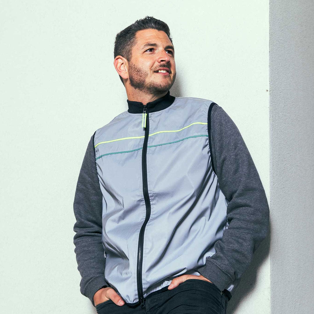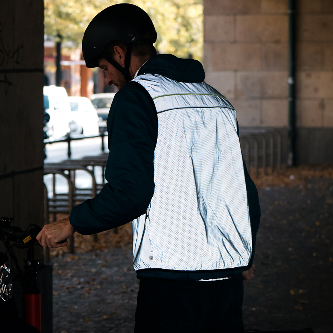 Das Besondere an George: Der Rücken ist perforiert um beim Sport für eine gewisse Atmungsaktivität zu sorgen, wohingegen die Front den Wind blockt. Das macht die Weste zu einem tollen Hybrid für Sport und Fahrradfahren gleichermaßen.