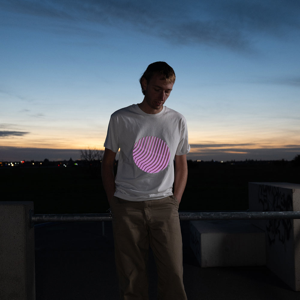 Das Sunset T-Shirt trägt die Kraft einer späten Sommersonne direkt auf Deiner Brust. Sein rundes, wellenförmiges Motiv schimmert tagsüber in einem warmen, auffälligen Pink wie der Moment, in dem das Licht den Himmel rosa färbt. Sobald der Abend kommt, leuchtet das Motiv auf und verwandelt sich in ein intensives Sunset Pink, das sich anfühlt wie ein letzter Sonnenstrahl, der nur für Dich bleibt.