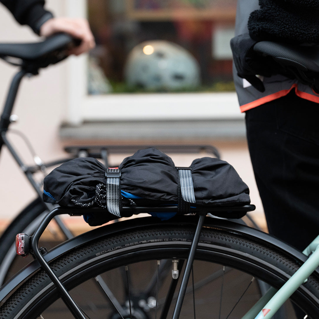 The small straps are your ideal companion for attaching small items to the frame, luggage rack or basket. You have a water bottle with you but don't want to take a backpack with you? Air pump? Windbreaker? Simply fasten it with the straps and off you go! Thanks to the continuously adjustable clip fasteners, fastening is done quickly.