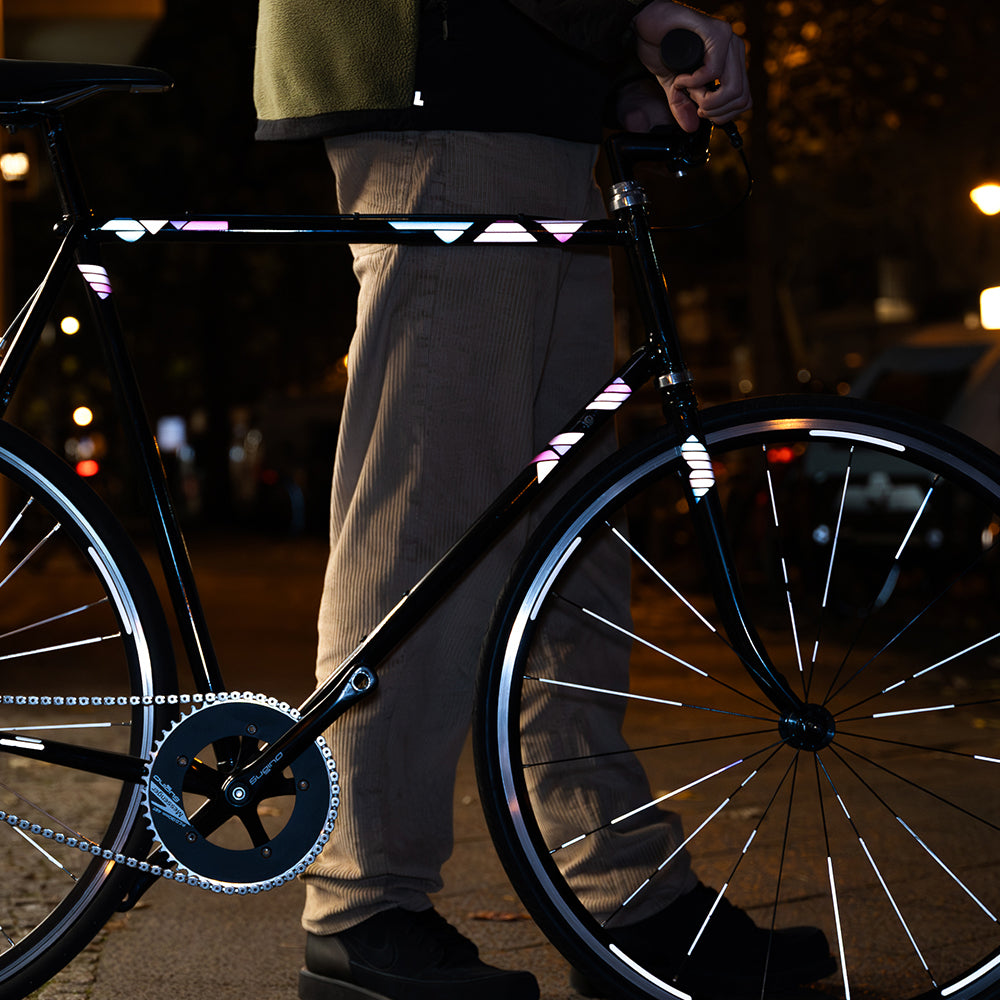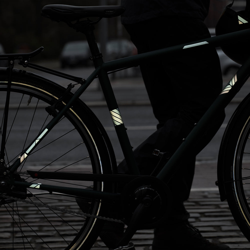 We are thrilled, our simple bikes are still discreet with the black reflective shakes and in the evening they shine like a Christmas tree. Toll.