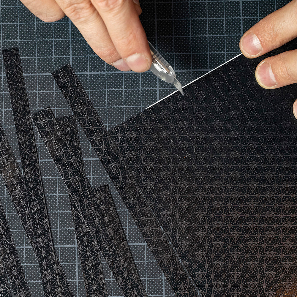 This design uses two sheets of Reflective DIY 'Kites & Darts' design in the grey colourway
