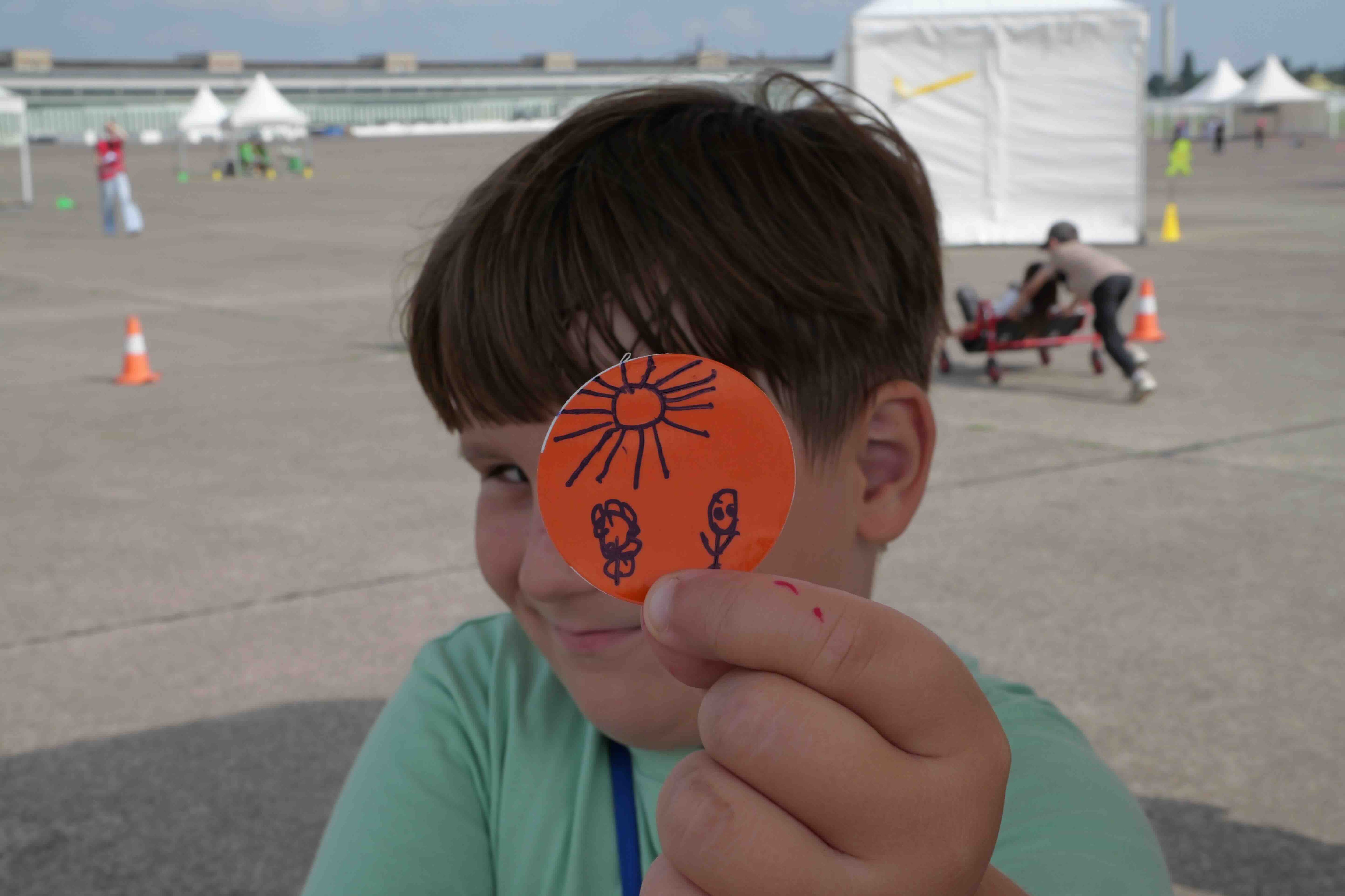 Jedes Jahr basteln wir Reflektoren beim Verkehrstag "Sichtbar mobil zur Schule" auf dem Tempelhofer Feld.